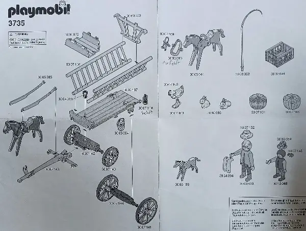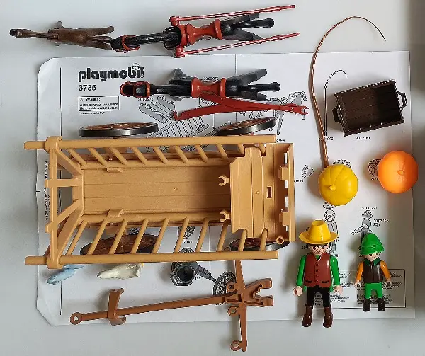 Beim Leiterwagengespann fehlen einzelne Teile (siehe Vermerk Bild 5) und es hat keine Schachtel mehr, die anderen Sets sind vollständig.