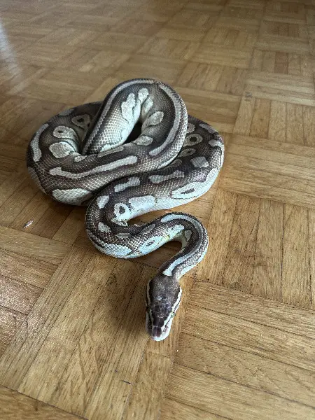 Er ist kräftig und weist ein normales Verhalten eines Python regius auf und frisst problemlos Frostratten.