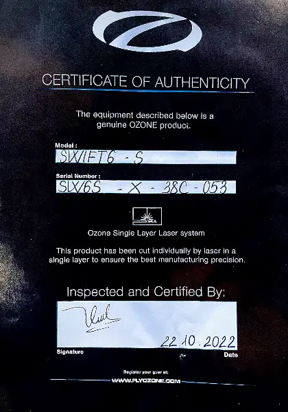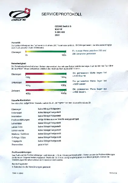 Zum Verkauf steht dieser hier abgebildete Ozone Swift 6 S (empfohl. Fluggewicht 70-84 kg) .
