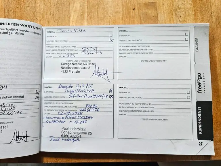 Der Service wurde regelmässig durchgeführt, zuletzt am 02.09.2025.