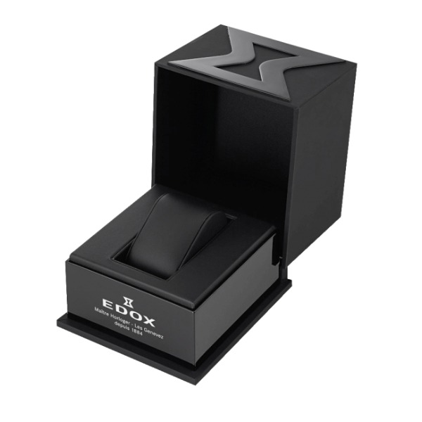 Technische Angaben: Edox Krone und/oder Drücker mit doppeltem O-Ring, Heliumventil, Nachleuchtende Zeiger und/oder Indizes, Sicherheitsschraubkrone, Transparenter Gehäuseboden