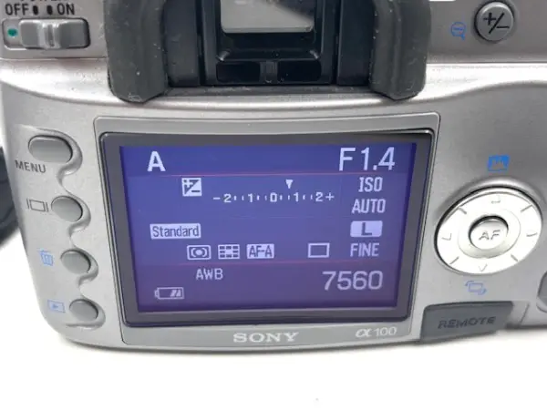 Minolta und übernahm dessen fortschrittliche Technik. Im Gegensatz zu den späteren Modellen hat die A100 noch eine Abblendtaste!