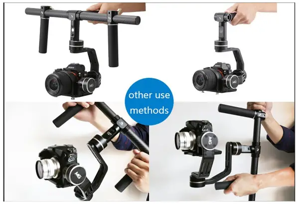 Halteplatte bietet eine Gummiauflage, damit die Kamera im Gebrauch nicht verkratzt und macht den Gimbal mit vielen Kameramodellen kompatibel. Mit dem Joystick steuert der Benutzer den Gimbal sehr weich und kann ihn stufenlos ausrichten. Die Kamera schwingt nicht nach, sondern wird exakt gesteuert. Die hervorragende Ergonomie zeigt sich auch am Griff, der angenehm fest in der Hand liegt.