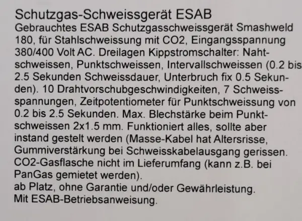 Zu verkaufen Schweissanlage Smashweld 180 inkl div Zubehör.