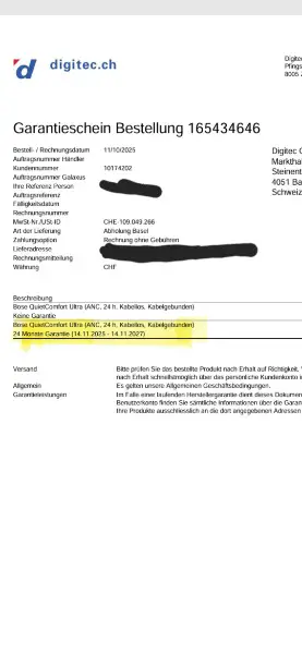 Rechnung bzw. Garantienachweis liegt bei und wird selbstverständlich mitgegeben.
