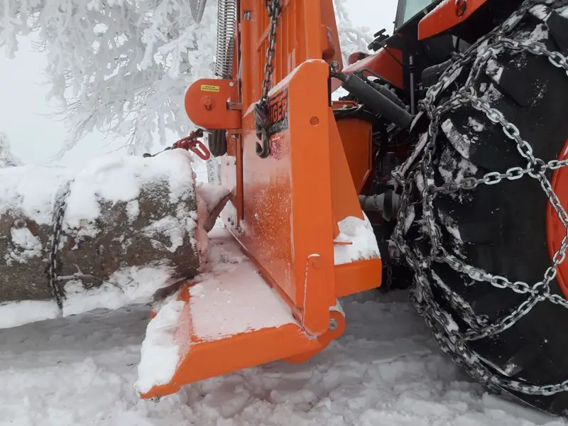 - 90° hydraulisch schwenkbares Klappschild mit geschraubter Verschleisschiene