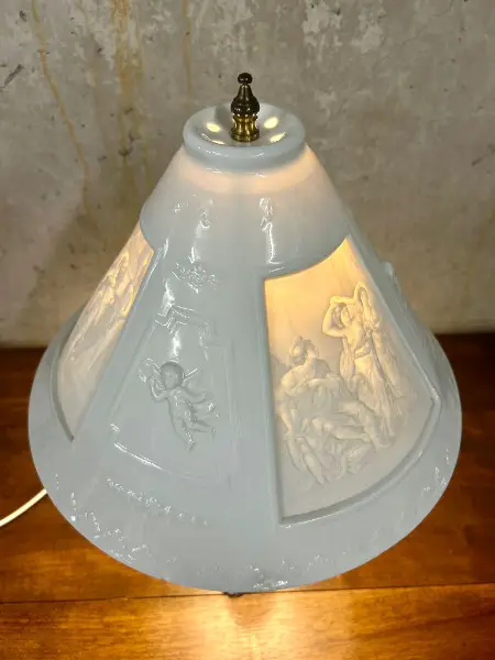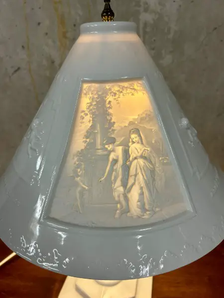 Seltene Litophanie Tischlampe aus Porzellan Keramik