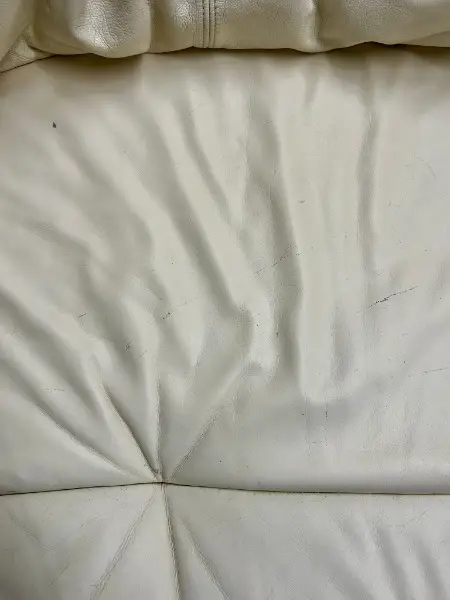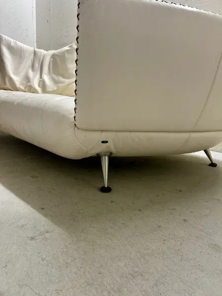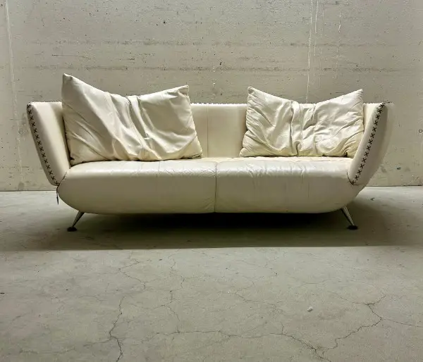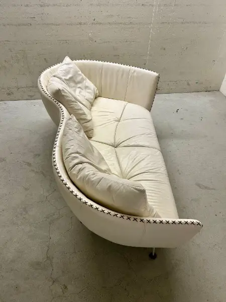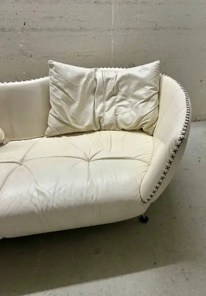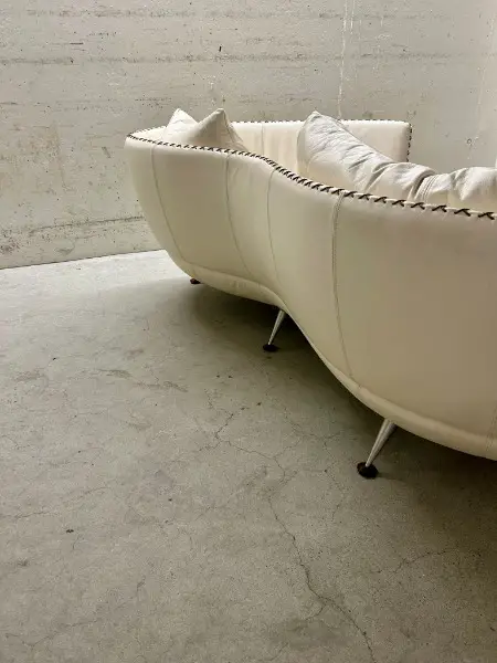 Ledersofa DS-102 in seltenen weissem Leder 70er-Jahre-Design, hergestellt von De Sede im Jahr 2000. Seine weich gepolsterte Schale schafft eine Insel im Wohnraum. Das DS-102 vermittelt moderne Grosszügigkeit und Gastfreundschaft. Entworfen von Mathias Hoffmann für den führenden Hersteller exklusiver Ledermöbel, De Sede, in der Schweiz. Das Leder ist von höchster Qualität und befindet sich in gutem gebrauchtem Zustand.