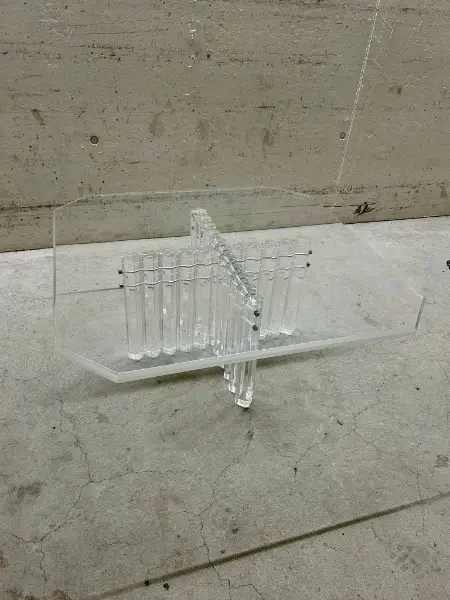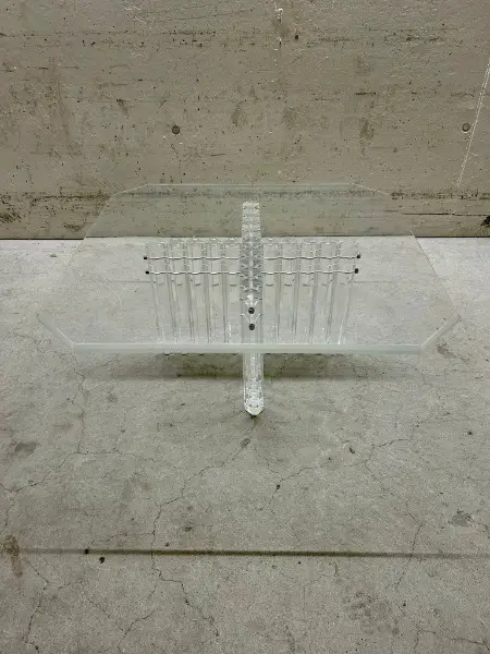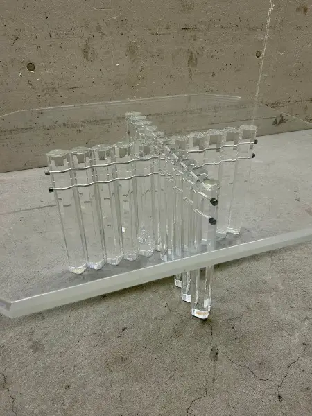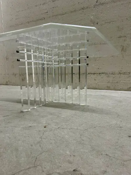 Tischplatte ist transparent, das Untergestell besteht aus mehreren Acrylglasstäben. Perfekt für alle, die ein stilvolles und modernes Zuhause schätzen.