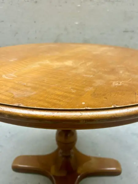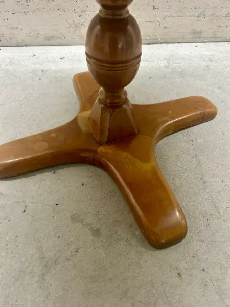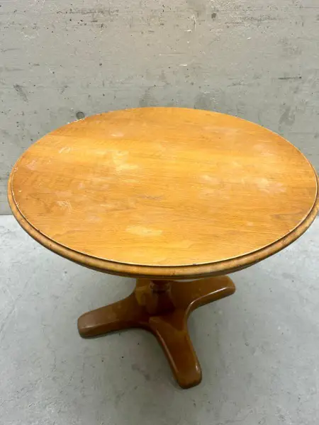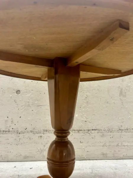 Schöner runder Holztisch. Ideal als Beistelltisch. Der Tisch ist gebraucht und weist Gebrauchsspuren auf (siehe Fotos) , ist aber immer noch sehr stabil und bereit für eine zweite Runde. Mit etwas Liebe und Pflege lässt er sich bestimmt wieder in neuem Glanz erstrahlen lassen!