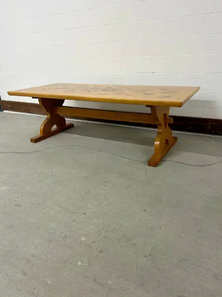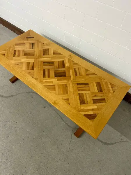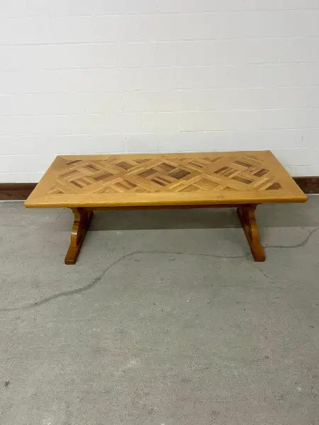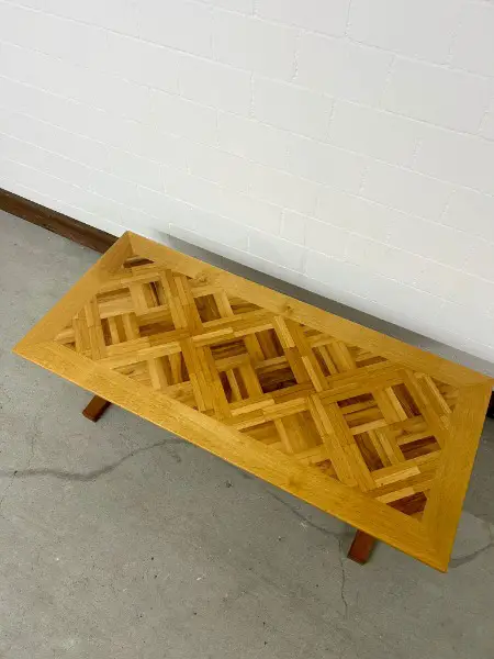 Einzigartiger Retro-Couchtisch mit Intarsien – Handgefertigter Holztisch im Vintage-Stil