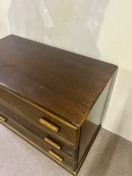 Vintage Rattan Bambus Kommode 3 Schubladen