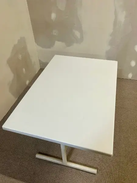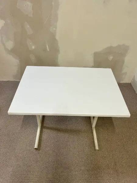 Tisch im schlichten Design, klappbar und platzsparend verstaubar. In Weiss gehalten, eignet er sich perfekt als Beistelltisch im