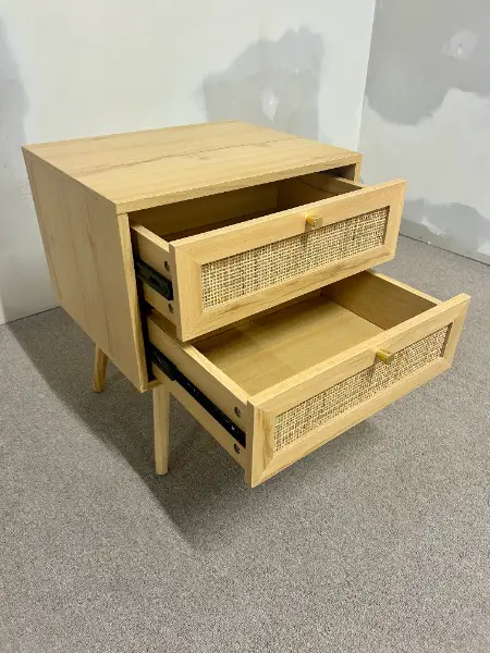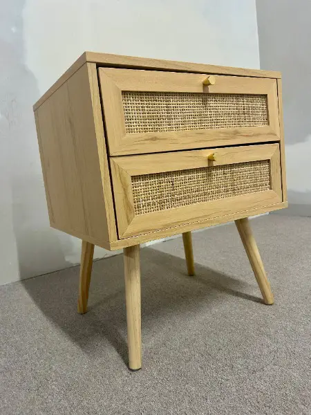 Nachttisch mit Rattantüren. Ein moderner, platzsparender Nachttisch für das