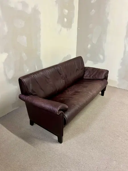Wohnzimmer oder Lounge-Bereich mit klassischem Vintage-Charme. Das Sofa hat altersbedingt schöne Patina, bzw. Gebrauchsspuren.