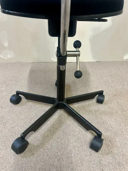 Stuhl ist höhenverstellbar, komfortabel gepolstert und mit einem stabilen 5-Rollen-Fusskreuz ausgestattet. Ideal für Büro,
