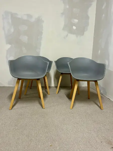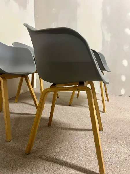 Graue Schalenstühle mit ergonomischer