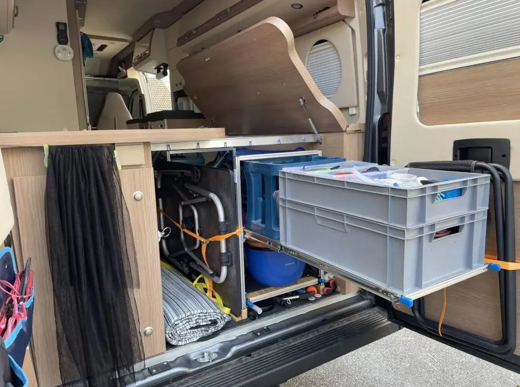 Zusätzliches Zubehör, Zusatzluftfeder Hinterachse und Komfort Feder Vorderachse, 18 Zoll Alufelgen mit Sommerreifen und 16 Zoll Alufelgen mit Winterreifen, Alarmanlage Abzugshaube, Solaranlage, Lithium Batterie, Wechselrichter, Zusatz Ladebuster 60A etc.