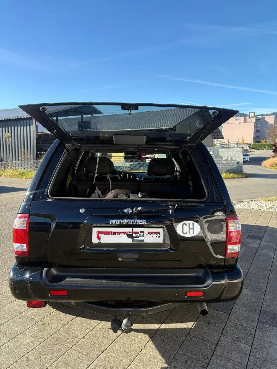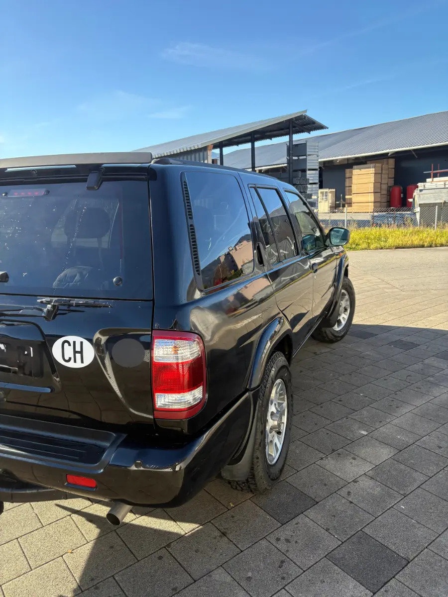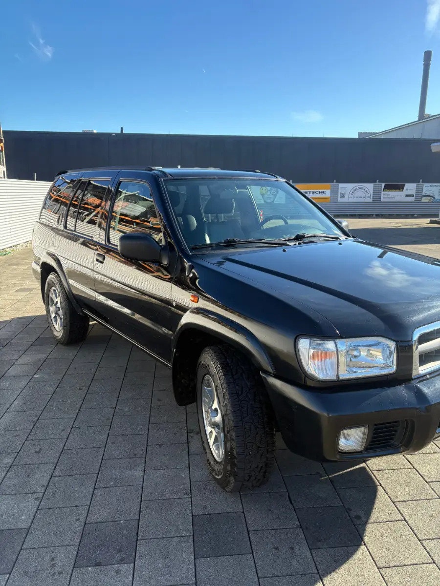 Zum Verkauf steht ein gepflegter Nissan Pathfinder in klassischem Schwarz. Der