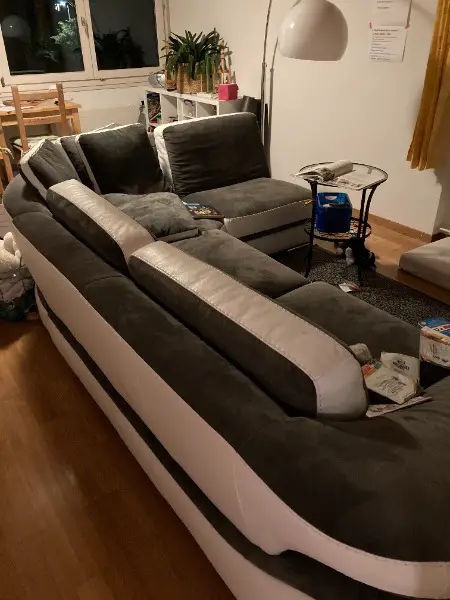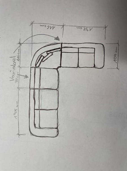 Wir haben leider kein Platz für das ganze Sofa, daher auch die Fotos in Teilen. Wobei ein Teil sogar auf den Fotos fehlt: Doppelteil mit Abschluss rechts (Spiegelbildlich zu dem auf dem Foto)