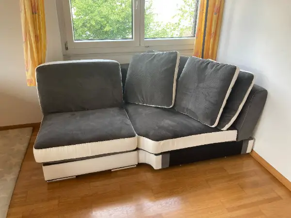 Wie auf den Fotos zu erkennen, kann man das Sofa in vier Hauptteile auseinander nehmen und entweder einzeln einsetzten oder als ganzes grosses Sofa.
