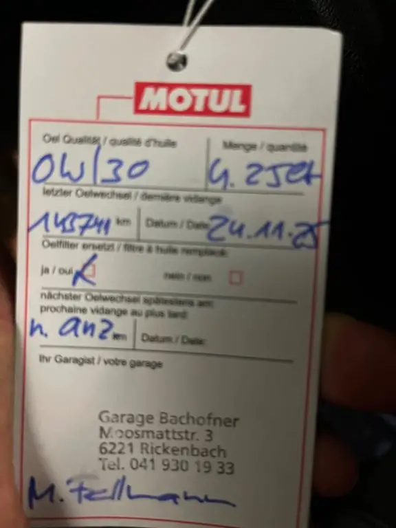 Service: 26.11.25 wurde ein kleiner Service vorgenommen. Dabei wurde ein Ölwechsel durchgeführt. Ausserdem wurden 4 neue Winterpneu montiert.