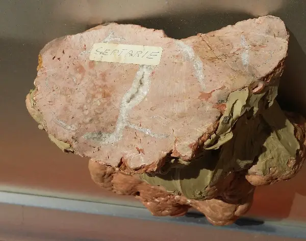 Septarie ist eine rundlich bis unregelmässig geformte Mineralansammlung (Konkretion) , die innerhalb von Sedimenten abgelagert wird. Diese Ansammlung besteht aus Kalk und ist von Rissen und Spalten durchzogen. Daher rührt auch sein Name, welcher sich aus dem lateinischen 'separare' ableitet und übersetzt? trennen, absondern? heisst. Diese Knolle bildet ein so festes Gebilde, dass sie bei der Verwitterung regelrecht vom umliegenden Gestein abgesondert wird. Septarie besteht überwiegend aus Calcit, enthält aber auch unter anderem Baryt, Quarz oder Pyrit. Der Kern von Septarie wird sehr häufig aus ursprünglich organischem Material gebildet, um das herum die Knolle anfängt zu wachsen.