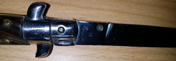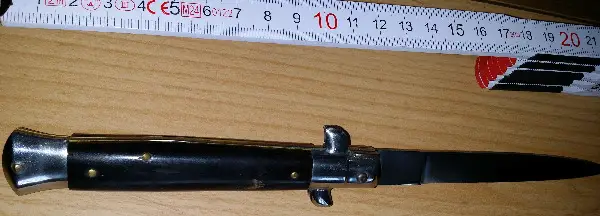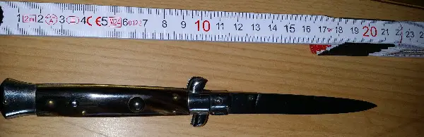 Zu Ihrer Betrachtung steht ein wunderschönes 22 cm Vintage Klapp Messer Stiletto zum Verkauf. Die Klinge ist 10 cm ohne den Griff, ein Original italienisches Stiletto. Es ist einer der schönsten Klapp Messer, und der Stempel ist mit Rostfrei gestempelt. Das Messer entfaltet sich extrem gut und öffnet sich mit nur einem winzigen Stück Bewegung. Perfekte Grösse für Ihre Gesässtasche. Viel Glück und danke fürs Anschauen...
