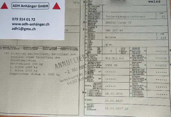 - Der Anhänger kann in 5042 Hirschthal, 3114 Wichtrach abgeholt, oder auf Wunsch nach Kostenabsprache geliefert werden.