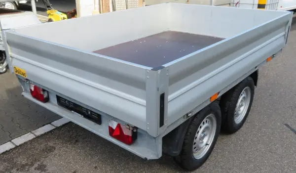 - Ausgerüstet mit: 7Pol Stecker, Bereifung 155 R 13, pro Seite je 2 Ösen für Ladungssicherung versenkt im Rand der Ladefläche