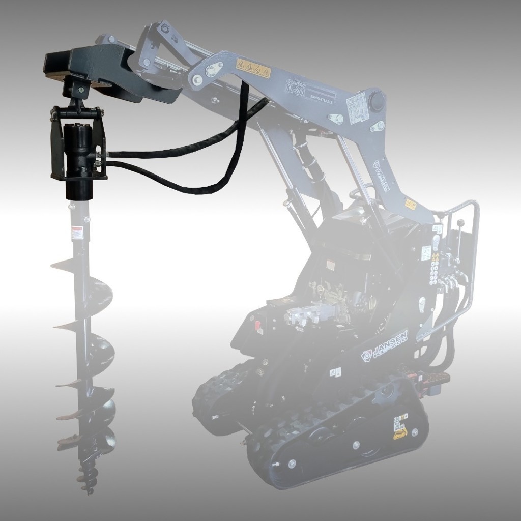 Kompaktlader Jansen® KL-200 mit hydraulischem Erdbohrgerät an.