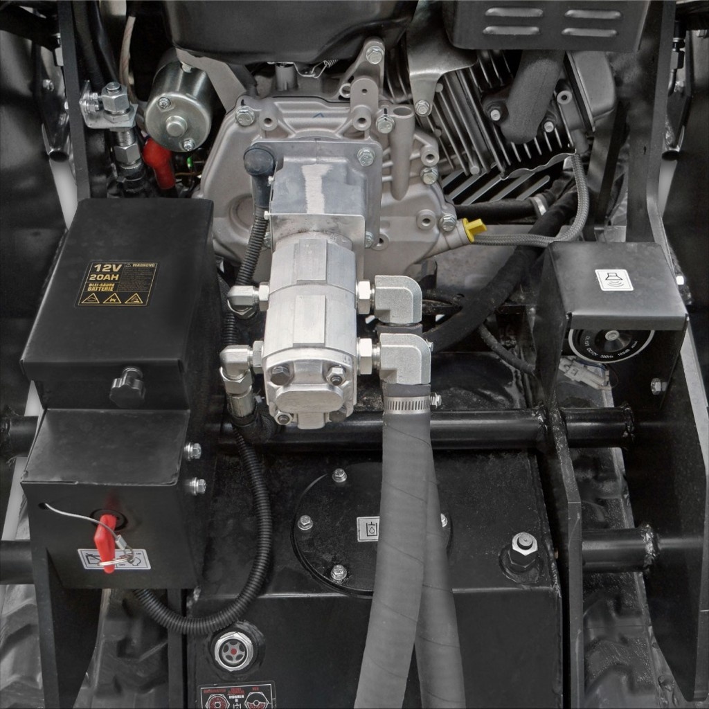 ? Die Pumpenleistung von 2x15 l/min und der Hydrauliköltank mit einem Fassungsvermögen von 29 Litern gewährleisten eine effiziente Leistung und lange Betriebszeiten