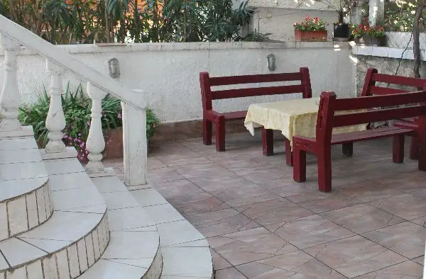 Apartment mit Dusche WC, weitere grosse Terrasse mit Panoramablick, 2 kleine Küchen, 2 kleine Apartments mit Dusche WC, Ausgang zum Garten.