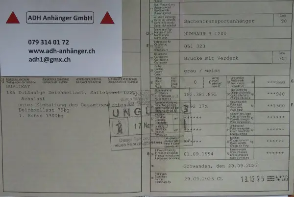 - Der Anhänger kann in 5042 Hirschthal, 3114 Wichtrach abgeholt, oder auf Wunsch nach Kostenabsprache geliefert werden.