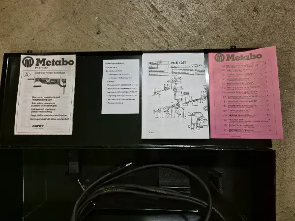 Gerät kann für Holzstärken bis 220 mm, oder Metalle, Kunststoffe oder einfach alles was zerkleinert werden muss eingesetzt werden. Für Sicheres arbeiten kann die Hubzahl, variabel zwischen 700 und 2400 Hube/min. eingestellt werden. Dazu sind je 5 Neue Sägeblätter S 1411 DF: S 1122 VF: S 922VF und S 522 BF und dies alles ist in einem Metallkofer sicher und praktisch verpackt.