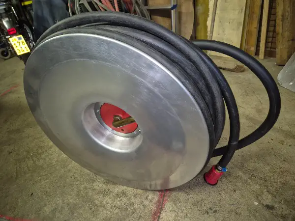 Biete einen frisch überholten Löschposten mit Messing Achse, Alu Schlauchtrommel und Gewebeverstärktem Schlauch an.