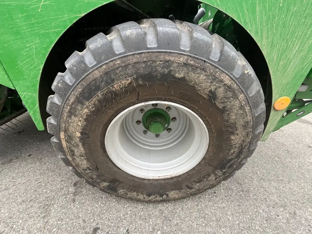 Rotor mit Schneidwerk / Ballenkammergrösse 1.25x1.23m / 18 Presswalzen / Netzbindung / Automatische Kettenöler / Obenanhängung / hydraulische Einleiterbremse 40km/h / Weitwinkelgelenkwelle / Bereifung 650/50 R22.5 BKT RideMax /