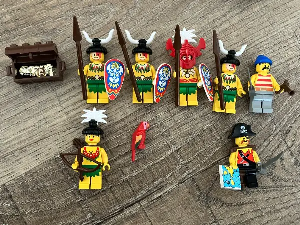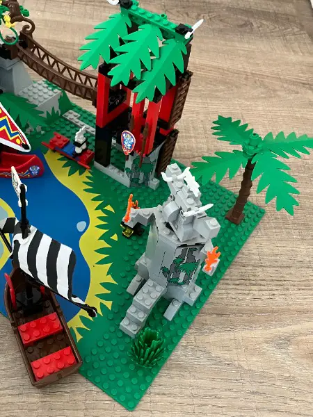 Die grosse Insel der Insulaner von 1994. Set ist 100% komplett, ohne Bauanleitung. Teile sind bespielt, aber in sehr gutem Zustand, die Aufdrucke sind in sehr gutem Zustand, Goldmünzen wie neu, die Segel sind original und in gutem Zustand (evtl. kleine Ausfransungn an den Rändern und den Ösen) . Teile sind gewaschen, Set wird demontiert verschickt. Preis ist nicht verhandelbar, Porto bei Versand beträgt 12.00 CHF