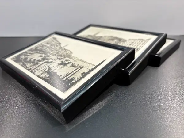 Vitrine Schreibtisch Sideboard Regal Büro etc. // Masse über alles ca.: H 16cm x B 11cm x T 1.8cm, Masse einer Postkarte ca.: L 14cm x B 9cm