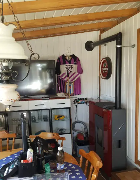 Wohnwagen mit neuem winterfestem Vorbau (echte Fenster und Türe) sowie moderner Pelletheizung. Ebenfalls funktoniert die standardmässige