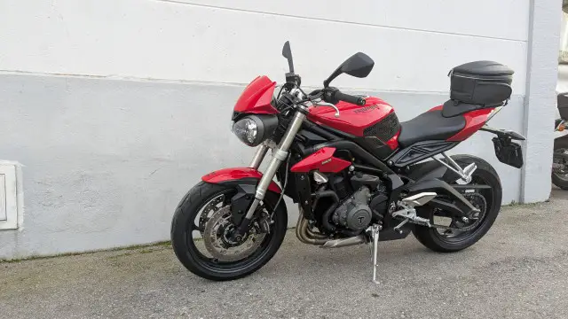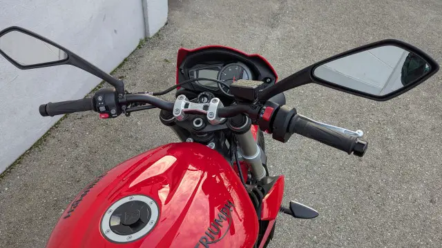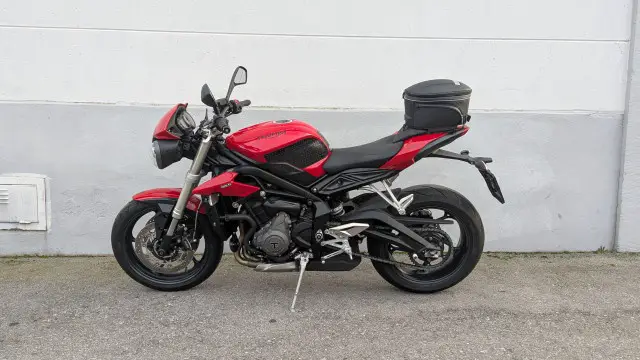 Maschine ist absolut original, einzig ein Tankschutz von Stomp Grip und die Praktische Hecktasche aus dem Triumph original Zubehör wurden nachgerüstet.