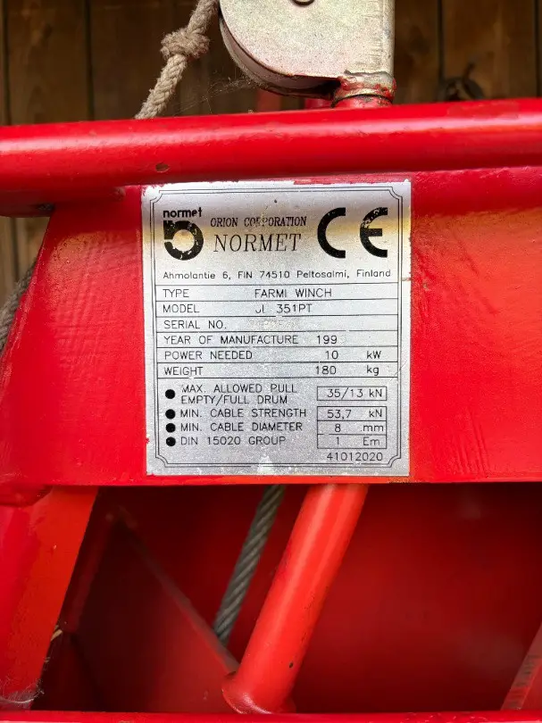 Seilwinde Normet FARMI 3.5 t inkl. Gelenkwelle (ca. 60-80m 10mm Stahlseil)