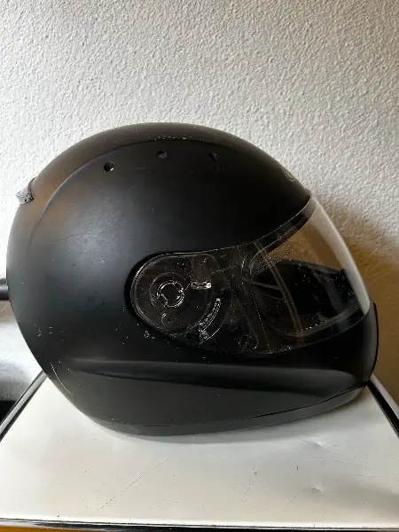 Es sind kleine, optische Kratzer vorhanden, aber der Helm ist voll funktionstüchtig.