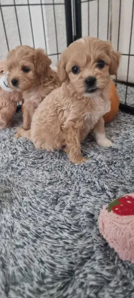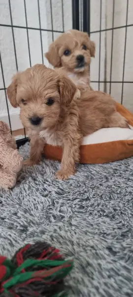 Maltipoo Weibchen dürfen bald in ihr neues Zuhause ziehen.