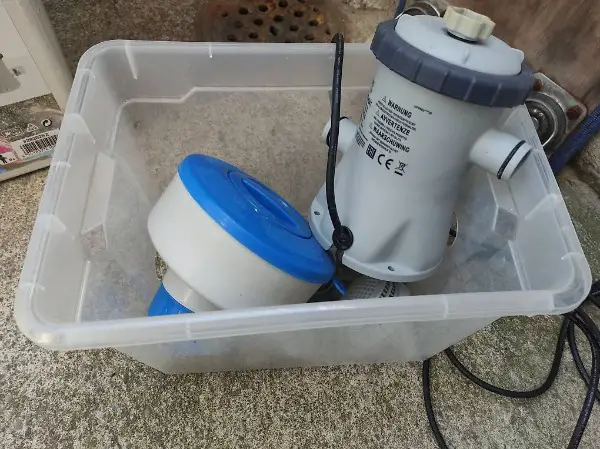 Behälter un die Filterpumpe abzudecken selber gemacht, Dossierer und Abdeckplane gebe ich auch noch dazu.