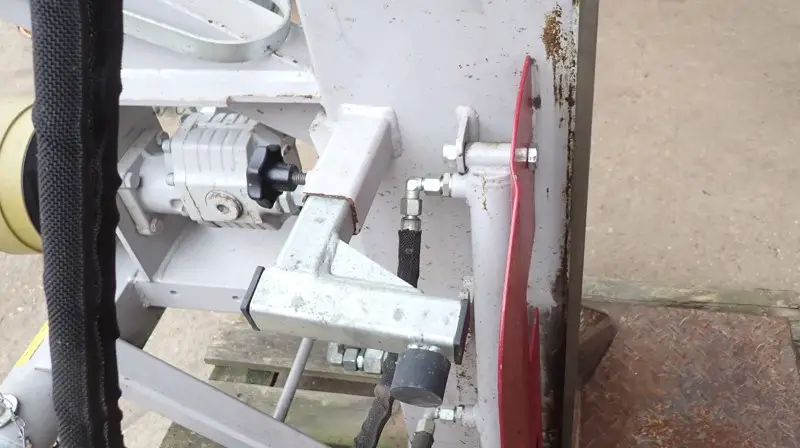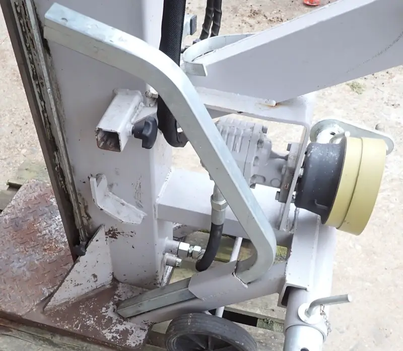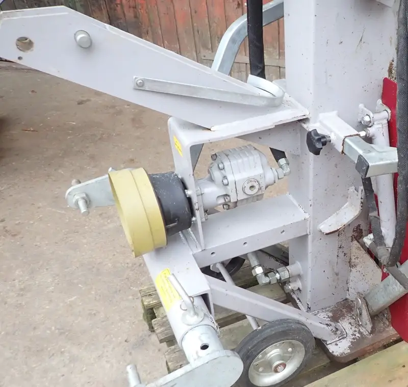 22 to. Spaltdruck, Dreipunktanbau Kat. I + II Gewicht ca. 480 kg, Zapfwellenantrieb, hydraulischer Stammheber,