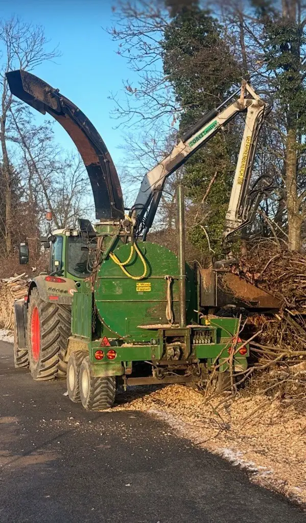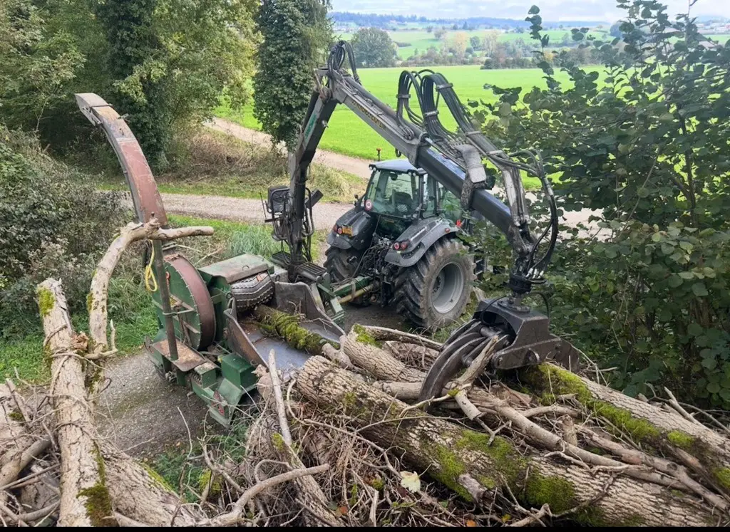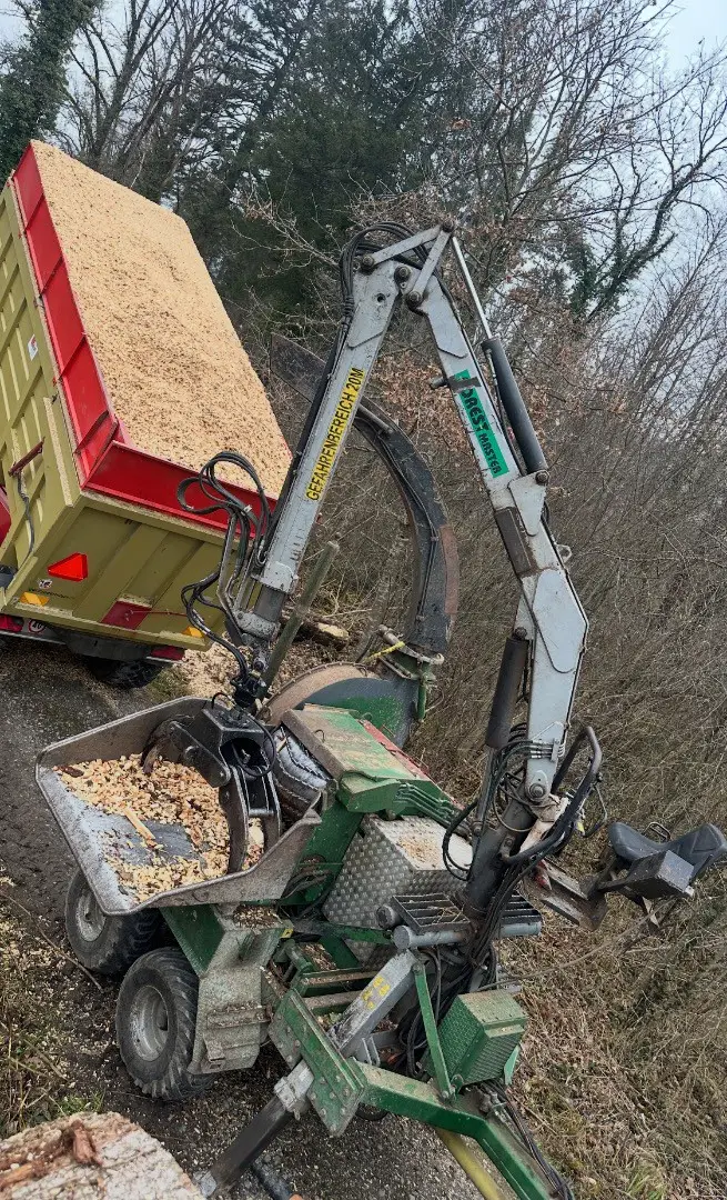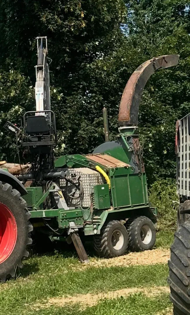 Der Hacker läuft gut und erzeugt schöne Hackschnitzel. Am Rotor wurden neue Messerhalterungen gemacht. Am Gebläse sind neue Wurfschaufeln und ein neues Hardox Verschleissblech wie auch am Auswurfturm.