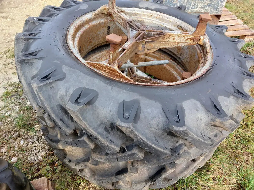 Equipement: Paire de roues jumelées complètes avec 3 attaches. Correspond 12.4/11-28, 360/70-28, 270/95 R 32, 9.5-32.