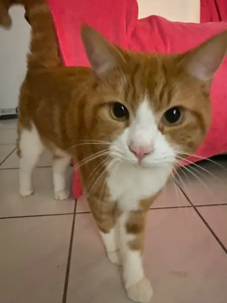 1Jahr alt. Männlich. Er ist nicht geimpft und nicht kastriert. Er war nie draussen.