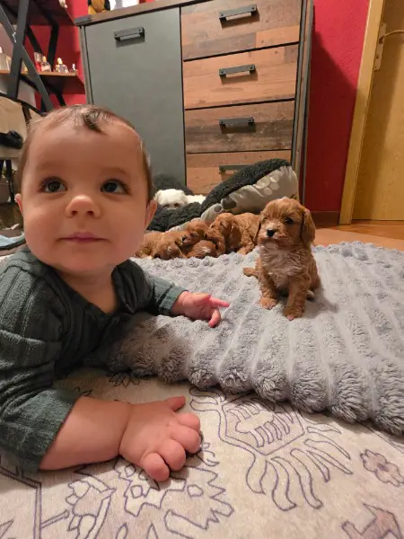 Welpen wachsen liebevoll im Haus mit Garten auf und nehmen aktiv am Familienleben teil. Sie lernen von Anfang an viele verschiedene Alltagsgeräusche, Menschen, Kinder und Umweltreize kennen und sind bei der Abgabe bestens sozialisiert.